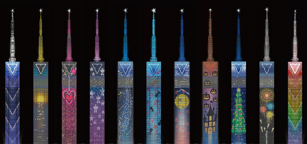現在では、桜(春)、金魚(夏)、お月見(秋)、Xmas(冬)等、全23種の動画デザインで市民をはじめ多くの観光客の皆様に福岡の夜を楽しんいただいております。