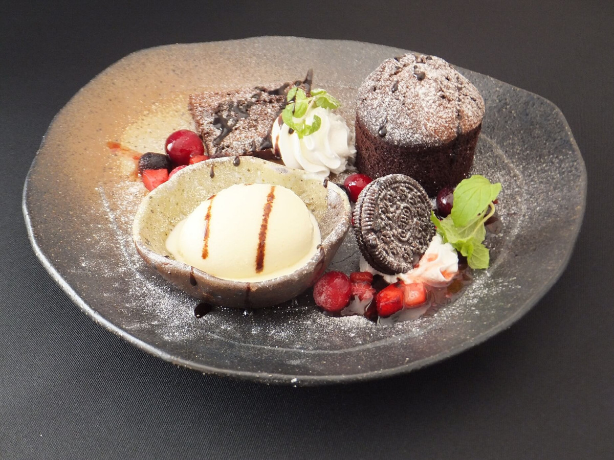 展望カフェ ルフージュにバレンタイン限定の「スペシャルプレート」が登場です。フォンダンショコラ、ガトーショコラ、バニラアイスクリームのチョコレートソース、さくさくオレオを使用したチョコ好きにはたまらない一品となっています。